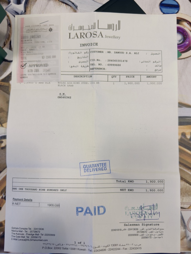 Note: Orologio proveniente da collezione privata. Manca controscatola. Garanzia araba