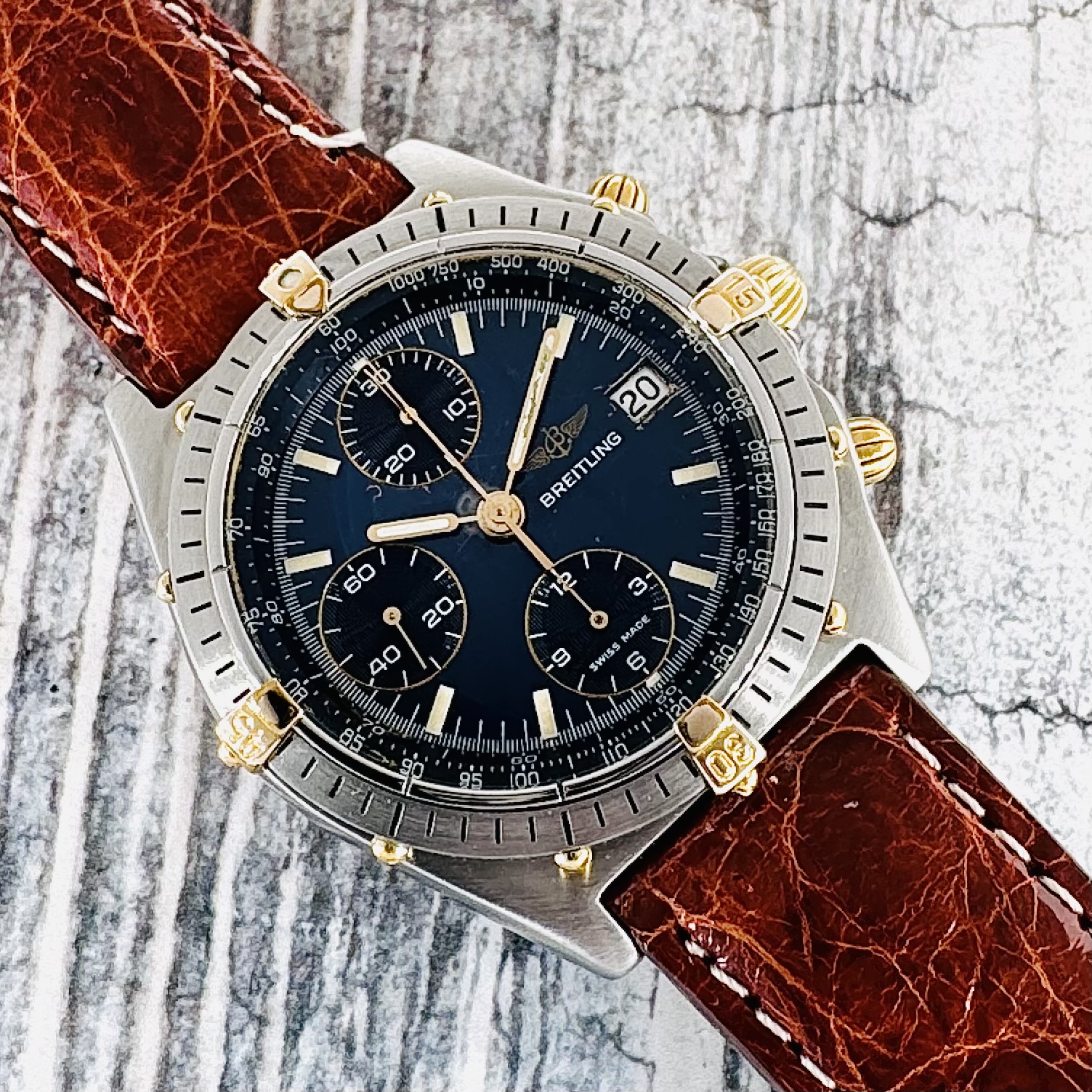 Note: Orologio proveniente da collezione privata. Presenti piccoli segni ma indossato poche volte. Cinturino in pelle indossato 2/3 volte. Mancano 1-2 maglie (va bene per un polso fino a 19mm)